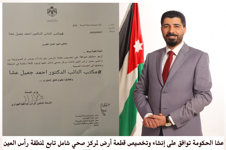 عشا الحكومة توافق على إنشاء وتخصيص قطعة أرض لمركز صحي شامل تابع لمنطقة رأس العين .