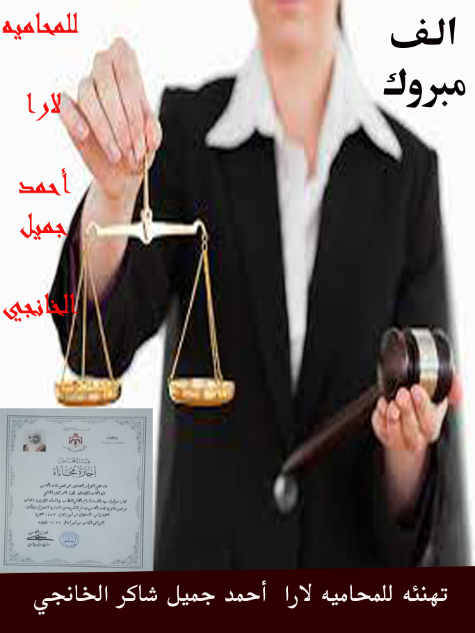 تهنئه للمحاميه لارا أحمد جميل شاكر الخانجي