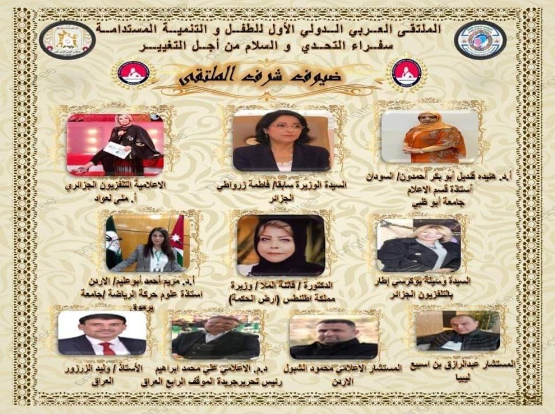 استعرض الملتقى أهداف الملتقى وأهميته والموضوعات التي ستتم مناقشتها في هذه الفعالية الدولية، و التي استمرت لمدة يوم واحد حظى بحضور العديد من الاكاديميين و الادباء و المفكرين و الباحثين و القانونين و متخصصين بعلم النفس و السلوك و مختصين في تعديل الصورة الذهنية للطفل لمناقشة صرخات الأطفال و ما اطلق عليهم من خلال صوت المرأة الجزائرية للاستثمار سفراء التحدي و السلام للطفولة العالمية و كان من ضمن قائمة الشرف و شركاء النجاح الوزيرة فاطمة الزهراء زرواطي كانت قد شغلت منصب وزيرة للبيئة والطاقات المتجددة من 25 مايو 2017 حتى 2 يناير 2020م و رئيسة حزب تجمع أمل الجزائر تاج ، كما كان ضمن لفيف الحضور المتميز من الجمهورية السودانية الأستاذة الدكتورة هنيدة قنديل الدكتورة هنيدة قنديل أبو بكر – أستاذة قسم الاعلام ب كلية الإمارات للتكنولوجيا ، و تضمن الحضور أيضا ا. دكتورة مريم أحمد أبو عليم من المملكة الأردنية الهاشمية أستاذ علوم الحركة الرياضية في جامعة اليرموك بالأردن و الإعلامية للتلفزيون الجزائري أ. منى لعواد ، السيدة وسيلة بوكرسي اطار مستشارة إعلامية للتلفزيون من الجزائر و المستشار د. على محمد إبراهيم رئيس تحرير جريدة الموقف الرابع العراقية و رئيس الجمعية العراقية العلمية للمخطوطات البروفسور د. مازن الاعرجي و الدكتور الإعلامي محمد توفيق كريزم من دولة فلسطين – رئيس اللجنة الاعلامية بالملتقى – و المستشار الإعلامي محمود الشبول من الأردن ، المستشار الإعلامي وليد الزرزور من العراق ، و المستشار عبدالرازق بن اسبيع المدير الإقليمي للمعهد الدولي للتنمية المستدامة من ليبيا و نخبه من الإعلاميين العرب المتميزين المستشارة الإعلامية و الصحفية ملاك الكوري رئيس ملتقى الاعلام الدولي من الأردن ، المستشار الاعلامي فهد مرشد المطيري من السعودية ، المستشار الإعلامي و الصحفي هتان سعيد زمزمي من السعودية و الاستاذه الاعلامية سعاد محمد و الاعلامي احمد الكومي والمستشارة الاعلامية وناشرة موقع بوست نيوز ايمان المومني من الاردن