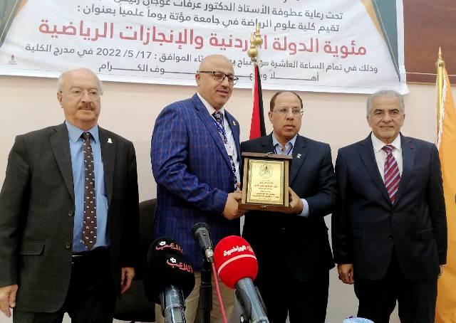 من جهته أثنى الدكتور مروان الموسى على دور كلية علوم الرياضة في جامعة موتة وَانقتاحها على المجتمع المحلي والوسط الرياضي والشبابي، ومشيداً بالتعاون التوثيق بين جامعة مؤتة واتحاد الإعلام الرياضي.