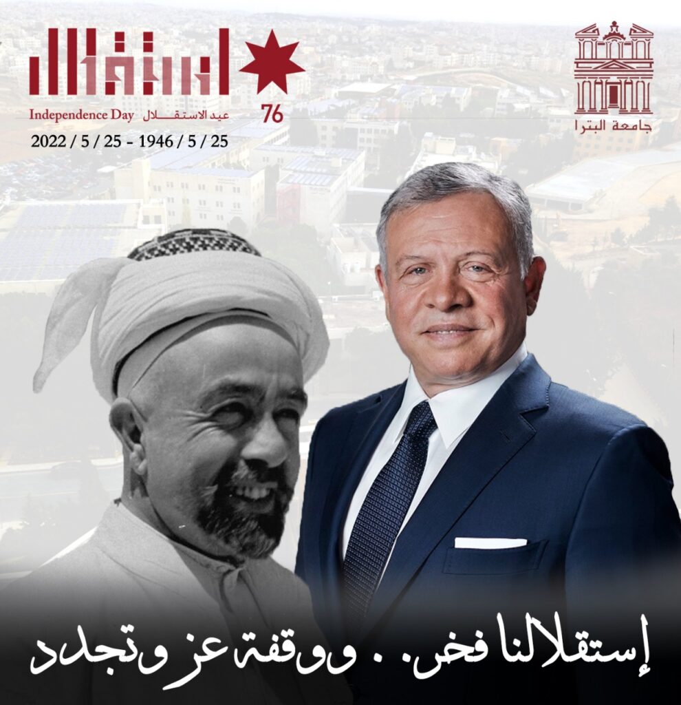 هرمنا – احتفت جامعة البترا بالعيد السادس والسبعين لإستقلال الأردن في فعالية فرح وطنية حاشدة أقامتها عمادة شؤون الطلبة تحت عنوان ” إستقلالنا فخر.. ووقفة عز تتجدد”.