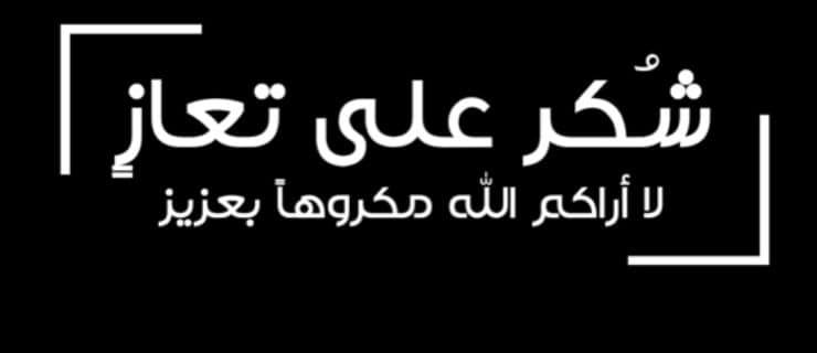 كما نشكر من قدم لنا واجب العزاء من إصحاب المعالي والعطوفه والأصدقاء سواء بالحضور او من خلال الاتصال الهاتفي او وسائل التواصل الاجتماعي والذي كان له الاثر الطيب في نفوسنا شكر الله سعيكم وجزاكم الله خير الجزاء آنا لله وانا اليه راجعون