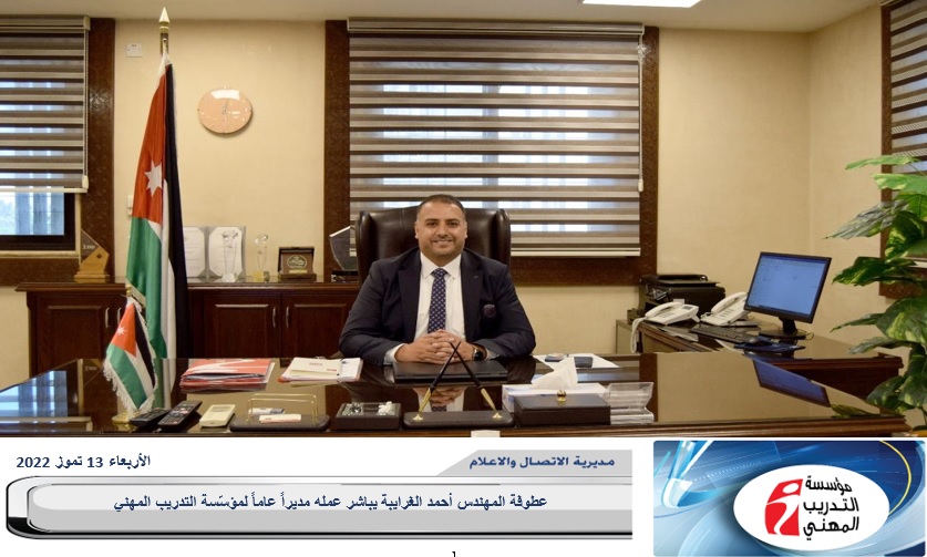 قال مدير عام مؤسّسة التدريب المهني المهندس أحمد الغرايبة خلال اجتماعه الأول مع مدراء المديريات صباح اليوم أنّه يتشرف بالعمل لخدمة أردننا الغالي ونفع الشباب والشابات في جميع محافظات المملكة، وتسهيل وصول الخدمات التدريبية النوعية المقدمة لهم وفق أعلى معايير الجودة.