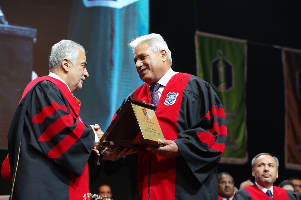 وخاطب الخريجين بالقول : أيها الخريجون لقد استحققتم ان تعيشوا هذا اليوم الجميل برفقه ذويكم، من واصلوا الليل بالنهار وبذلوا الغالي والنفيس في سبيل الوصول الى هذه اللحظة فمبارك لكم ومبارك لهم على عطائهم مثمنين ومقدرين اختياركم لجامعة عمان الأهلية طريقاً لمستقبل ابنائكم ومؤكداً بأن الجامعة ستبقي تحمل راية التميز والابداع.