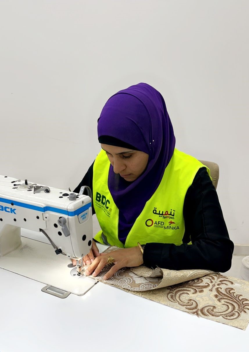 ولان خديجة تأمن بأن المسؤوليات الجسام الملقاة على عاتقها لا تدعها تنتظر أن تمطر السماء ذهباً انكبت على عملها باتقان والتحاقها بالتدريب المهني داخل إحدى الشركات بمهنة الخياطة الصناعية والذي ميز التدريب بأنه كان على أيدي ماهرة من أصحاب الخبرات والمتابعة الكبيرة من قبل القائمين بمشروع تنمية وتوفير البيئة المناسبة والجو السائد المريح الذي عزز الثقة بالإستمرار على التعلم والإصرار على تعلم المهنة وهي سلاح ذو حدين ورغم الصعوبات بالبداية الا أنها استطاعت احتراف هذه المهنة وباتت من المميزين بالشركة.