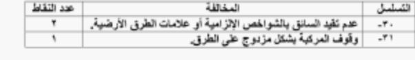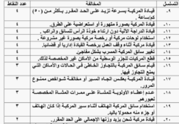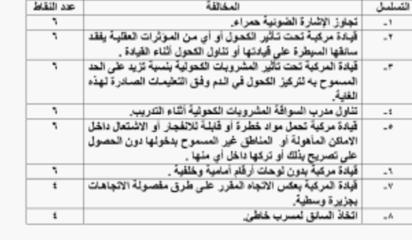 صدرت الارادة الملكية السامية باقرار نظام النقاط المرورية على المخالفات وعلى النحو التالي