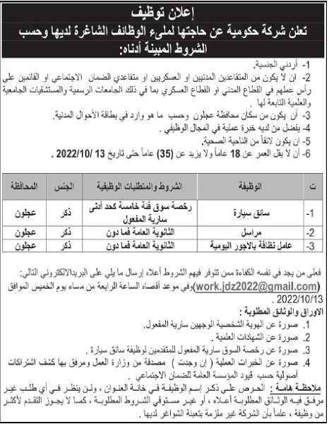 وظائف شاغرة في شركة حكومية