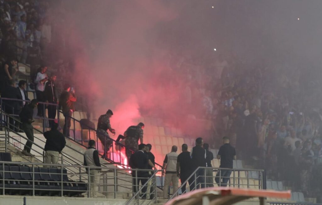 اوقف مدعي عام اربد، اليوم السبت، 9 أشخاص لمدة أسبوع لكل واحد منهم بعد ضبطهم من قبل رجال الأمن بحيازة ألعاب نارية “شماريخ” وإدخالها إلى المدرجات خلال مباراة ناديي الفيصلي والوحدات التي جرت امس على استاد مدينة الحسن الرياضية باربد.واسند المدعي العام لهم جرم شغب الملاعب وفقا لأحكام المادة 467 مكررة من قانون العقوبات التي تصل عقوبتها في الحد الأعلى للحبس لمدة ثلاث سنوات.