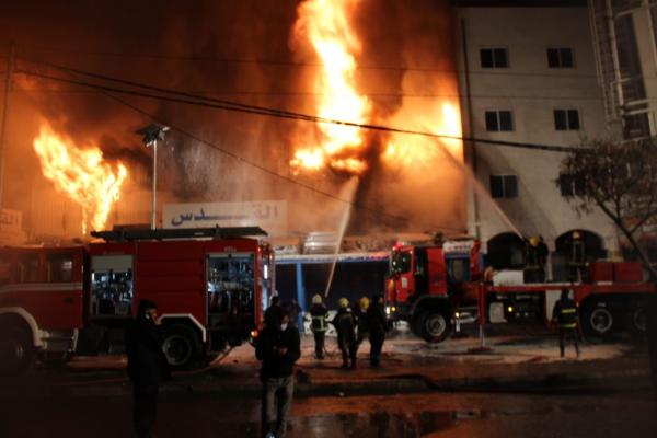 إصابة 6 أفراد من الدفاع المدني خلال إخماد حريق مستودعات في اربد