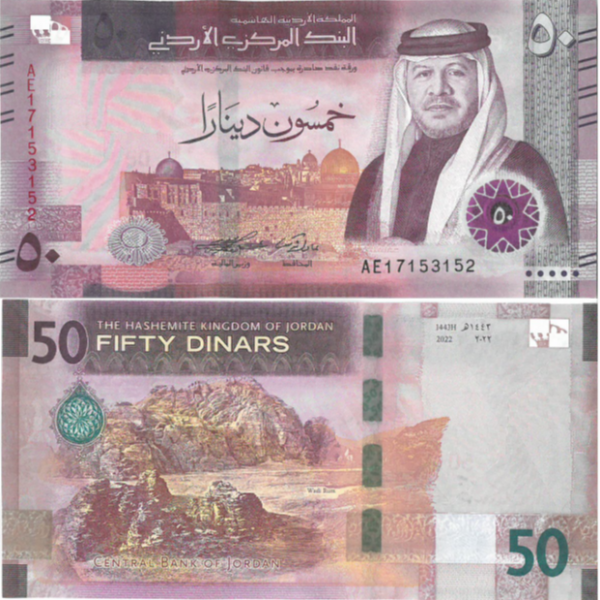 نشر البنك المركزي الأردني اليوم السبت على موقعه الالكتروني صوراً لباقي فئات أوراق النقد الأردني/ الإصدار الخامس (خمسون ديناراً، عشرون ديناراً، عشرة دنانير وخمسة دنانير) التي تتزين بصور الملوك الهاشميين كما هي في الإصدار الرابع والتي تم الإعلان مسبقا عن أوصافها ومواصفاتها في نظام اصدار النقد الأردني رقم (55) لسنة 2022 الصادر في الجريدة الرسمية بتاريخ 2/10/2022 لغايات تعريف الجمهور على أهم الصور والمعالم التي تزين هذه الفئات والتي تعكس الاصالة والحداثة والمعاصرة. ويتضمن الإصدار الجديد احدث العلامات الأمنية المستخدمة في عالم صناعة النقد بالإضافة الى تحسين جودة أوراق النقد واطالة عمرها في التداول نظرا لمرور نحو عشرين عاما على طرح الإصدار الرابع من النقد الأردني وظهور الحاجة الى تعزيز العلامات الأمنية والمواصفات الفنية للورقة النقدية وتحسين علامات تمييز فئات النقد الخاصة بالمكفوفين وضعاف البصر. وبهذا الصدد يؤكد البنك المركزي الأردني أن هذه الفئات لن تحمل الصفة القانونية (كعملة قابلة للتداول) الا بعد طرحها جنباً الى جنب مع فئات الإصدار الحالي للأوراق النقدية (الإصدار الرابع) ضمن مواعيد سيتم الإعلان عنها وقت طرح كل فئة من قبل البنك المركزي الأردني، ويستثنى من ذلك فئة الدينار التي تم طرحها بالتداول بتاريخ 26/12/2022 جنبا الى جنب مع فئة الدينار من الإصدار الرابع.