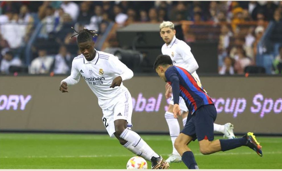 وسجل أهداف برشلونة، جافي وليفاندوفسكي وبيدري في الدقائق 33 و45 و69، وسجل لريال مدريد كريم بنزيما في الدقيقة 93