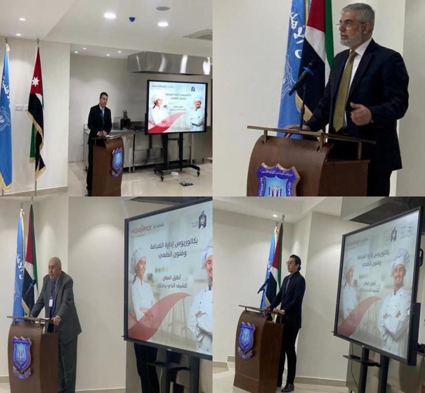 بحضور الأستاذ الدكتور ساري حمدان رئيس جامعة عنمان الاهلية والأستاذ الدكتور فايز حداد عميد كلية الأعمال في الجامعة والسيد أيمن رشيد مدير عام فندق موفنمبيك عمان ، وأعضاء الهيئة التدريسية في الكلية ، تم إطلاق أول حفل تدريبي لطلاب بكالوريوس إدارة الضيافة وفنون الطهي لمواد إدارة المناسبات وإجراءاتها ومادة مبادئ الطهي وخدمة الأغذية والمشروبات في مبنى التخصص ، حيث قام الطلاب بالتنظيم الكامل للحفل وتخلله عدة فعاليات من بينها جلسات تعريفية حول واقع قطاع السياحة في المملكة.