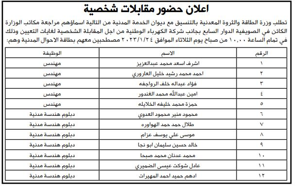 بالأسماء … وظائف شاغرة في مختلف الوزارات والمؤسسات الحكومية
