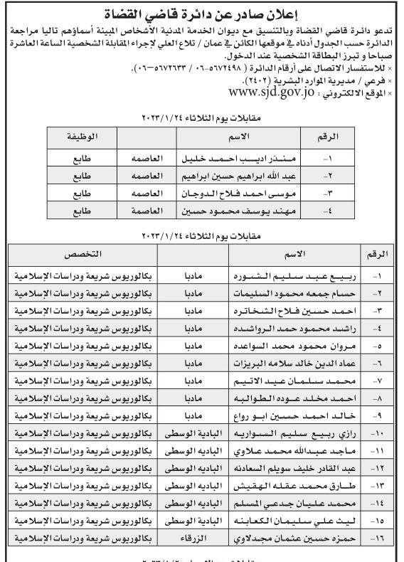 أعلنت عدد من المؤسسات الحكومية اليوم الخميس، بالتنسيق مع ديوان الخدمة المدنية، عن حاجتها لتعيين وتعبئة وظائف شاغرة
