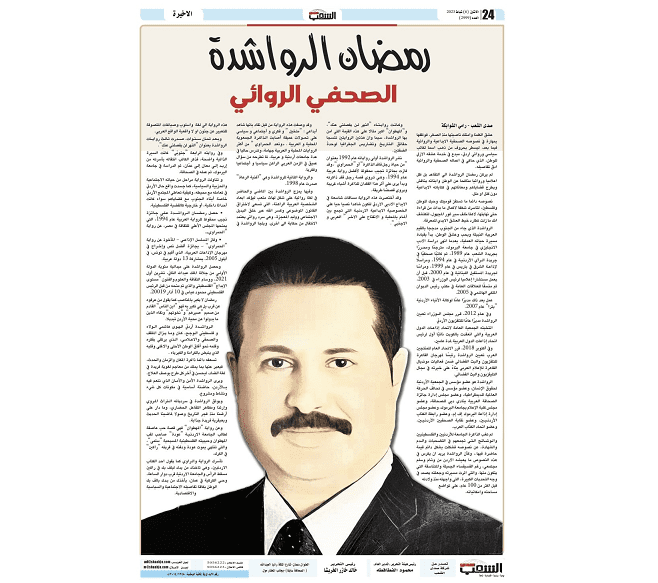 لم يركن رمضان الرواشدة الى التقاعد بل ظل اعلاميا وروائيا منافحا عن الوطن وابنائه يناقش ويطرح قضاياهم ومعاناتهم في كتاباته الابداعية دون كلل او ملل.
