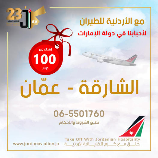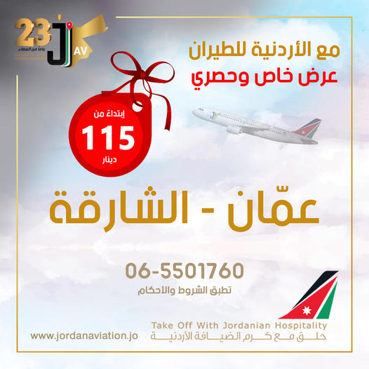 مكنك الحجز والدفع عن طريق موقعنا الإلكتروني :www.jordanaviation.jo![]()