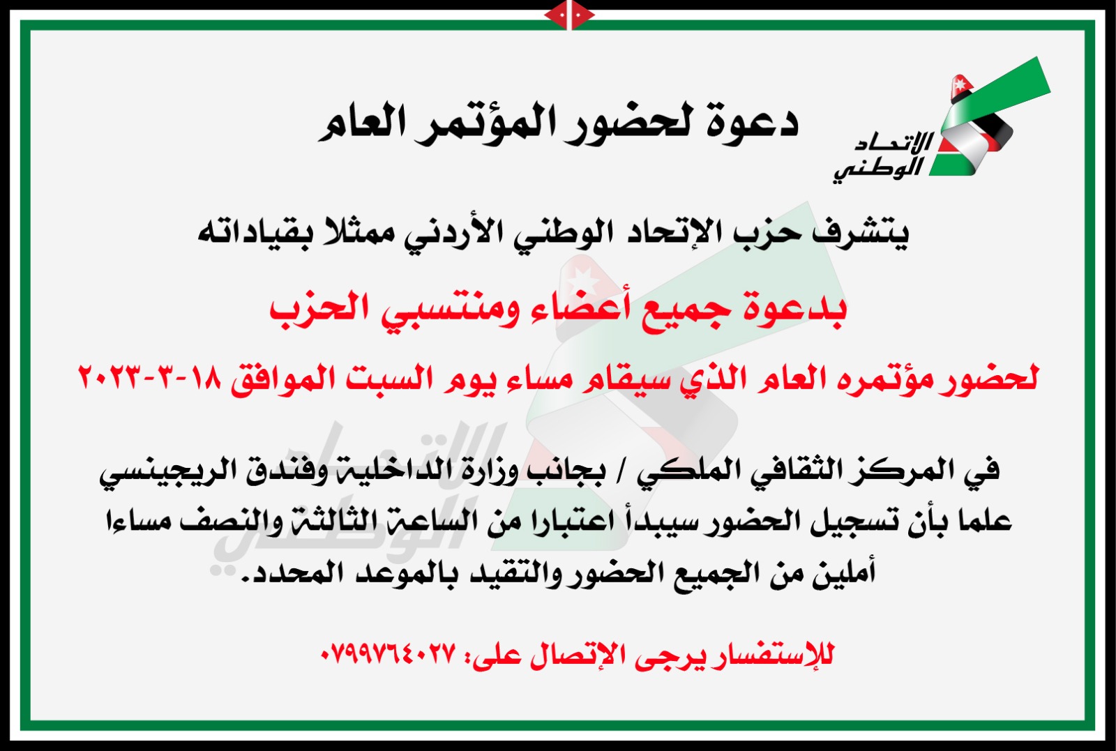 الرئيسية/وظائف/حزب الاتحاد الوطني الأردني يعلن عن موعد عقد مؤتمره العام و يدعو اعضاء حزبه المؤسسين وظائف حزب الاتحاد الوطني الأردني يعلن عن موعد عقد مؤتمره العام و يدعو اعضاء حزبه المؤسسين 11 مارس، 2023آخر تحديث: 12 مارس، 2023 أقل من دقيقة فيسبوك X بينتيريست ماسنجر ماسنجر واتساب هرمنا الاخباري – عمان 11 مارس، 2023آخر تحديث: 12 مارس، 2023 أقل من دقيقة فيسبوك X بينتيريست ماسنجر ماسنجر واتساب شاركها فيسبوك X بينتيريست ماسنجر ماسنجر واتساب