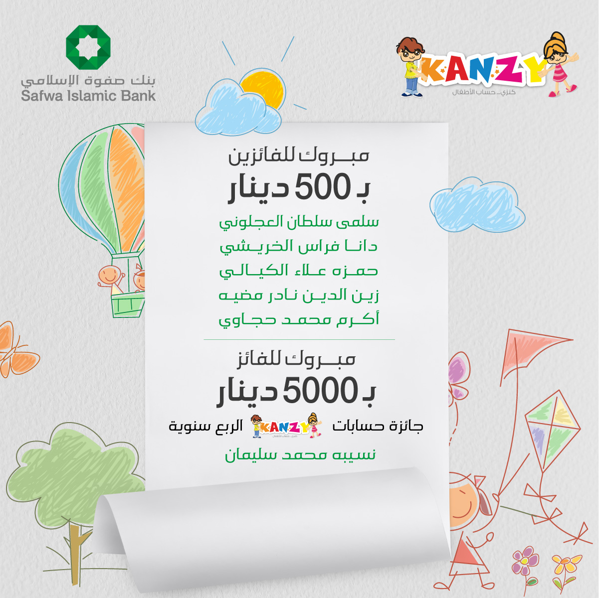 بنك صفوة الإسلامي يعلن الفائز بأول سحب ربع سنوي للعام 2023 والفائزين بسحب شهر آذار لحساب توفير الأطفال “كنزي”