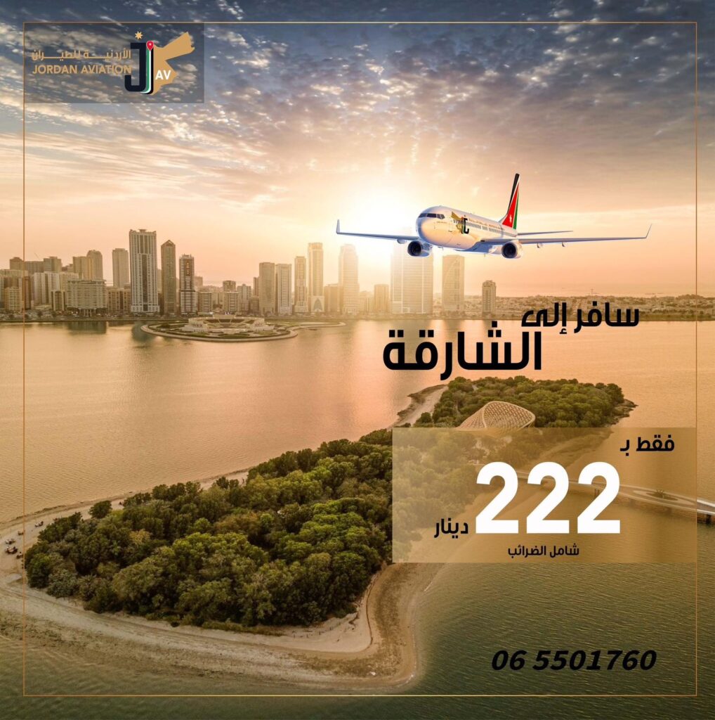 (222 دينار ) ذهاب و عودة الى الشارقة مع الاردنية للطيران وانتظروا العروض الصيفيه على باقي الوجهات