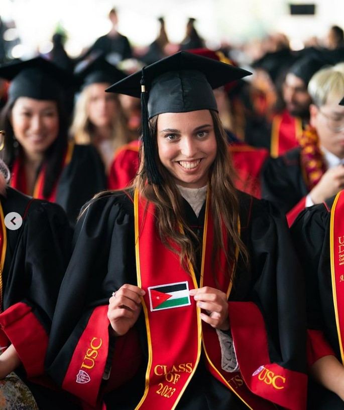 وقالت جلالتها: “فخورة للاحتفال بتخرج سلمى من جامعة كاليفورنيا الجنوبية أمس – مبارك حبيبتي”.