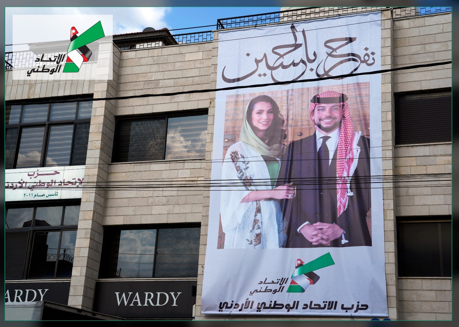 زيّن حزب الاتحاد الوطني الأردني مبناه في منطقة ام اذينة بالعاصمة عمان بمناسبة زفاف ولي العهد الأمير الحسين بن عبد الله والآنسة رجوة خالد السيف.