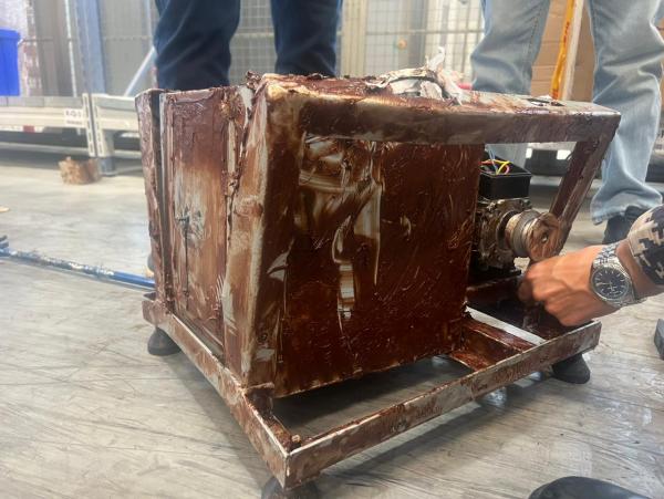 فقد تم الاشتباه بماكنة قادمة من احدى الدول مرورًا بعدة دول وصولًا الى مطار التخليص/ الشحن الجوي حيث تم اخضاعها واستهدافها إلى جهاز الفحص بالأشعة (x-ray)، وعند إجراء عملية الكشف والمعاينة الفعلية وجد بداخلها (12) كغم من الكوكايين الخام، مخبأة بطريقة احترافية فنية، ومغلقة بإحكام؛ ليصعب الوصول إليها داخل الماكنة.
