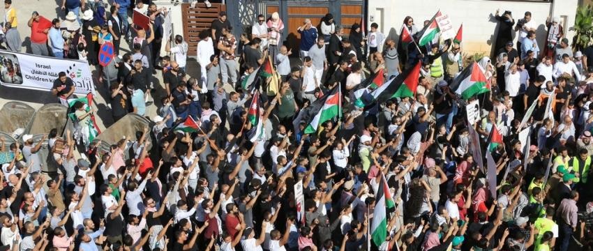 ونظمت فعاليات شعبية وحزبية اليوم الجمعة، وقفة تضامنية أمام مسجد الكالوتي غربي العاصمة عمان، نصرة للشعب الفلسطيني ضد العدوان الإسرائيلي المستمر على قطاع غزة.