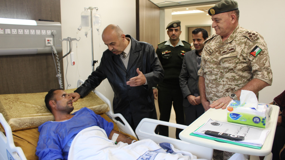 واطمأن بحضور مدير عام الخدمات الطبية الملكية العميد الطبيب يوسف زريقات، على الوضع الصحي للمصاب، التي وصفت حالته العامة بالمستقرة، متمنياً له الشفاء العاجل.