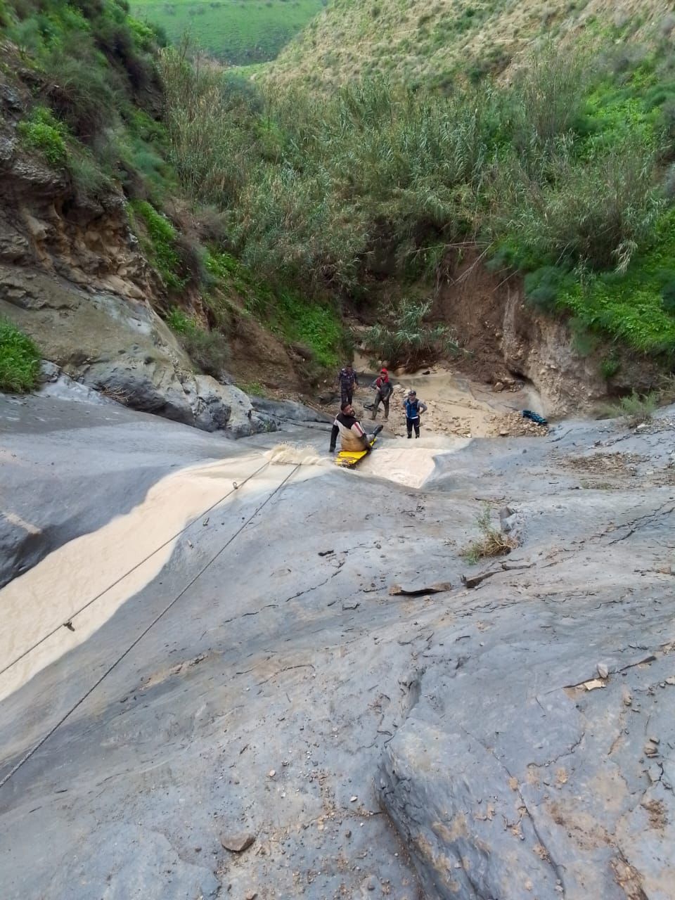 وتحركت مجموعات الدفاع المدني على الفور للموقع، وتمكنت من الوصول لمكان سقوط الشخص المصاب بعد المسير على الأقدام لمسافة ٢كم نظرا لوعورة المنطقة وتعذر سير الآليات عليها لا سيما في ظل الظروف الجوية السائدة، وتبين أن سقوط الشخص عن مقطع صخري في الوادي تسبب بإصابته بكسر في منطقة القدم.