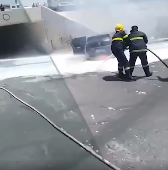 هرمنا الاخباري – حريق نشب في سيارة كهربائية ظهر اليوم على طريق المطار .