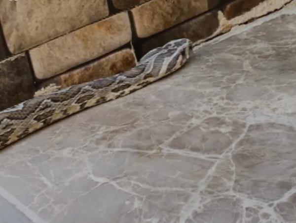 وقال مالك المنزل في مقطع فيديو وثقه بني ياسين أمس الجمعة إن العائلة اكتشفت وجود افعى فلسطين في حديقة المنزل وتواصلت مع الدفاع المدني والذي حضر لتخليصهم منها.