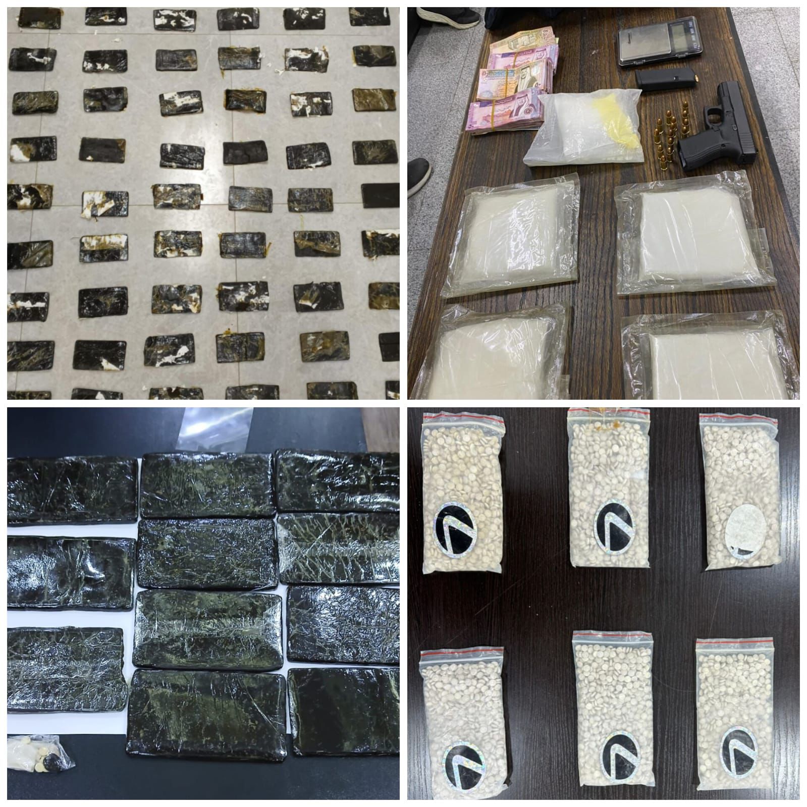 وأكّد الناطق الإعلامي أنّ أبرز تلك القضايا كانت التعامل مع أربع قضايا لأشخاص مهربين وتجار للمخدرات ارتبطوا بعصابات إقليمية لتهريب المخدرات، حيث أُلقي القبض في القضية الأولى في العاصمة على أحدهم بعد مداهمته وضبط بحوزته على 2 كغم من مادة الكوكايين المخدرة ، فيما دوهم في القضية الثانية والثالثة شخصان ممن يتعاونون مع تلك العصابات في محافظة العقبة وأُلقي القبض عليهما وضُبط بحوزة الأول 18 كف حشيش، فيما ضُبط بحوزة الثاني 17 كف حشيش، وفي القضية الرابعة في محافظة العقبة كذلك وبعد جمع المعلومات حول أحد الأشخاص والتأكد من استلامه كمّيات كبيرة من المواد المخدرة وتخزينها بموقعين مختلفين في المحافظة جرت مداهمته وإلقاء القبض عليه وبتفتيش الموقعين عُثر على 85 كف حشيش.
