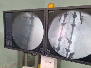 فقد تم اجراء عملية بغاية الخطورة من خلال تثبيت للعمود الفقري وتحرير النخاع الشوكي .