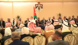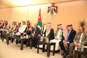 وقد استقبل رئيس الديوان الملكي الهاشمي يوسف حسن العيسوي هذا الحشد الوطني، حيث نقل لهم تحيات جلالة الملك عبدالله الثاني، واعتزازه الكبير بأبناء شعبه الأوفياء، الذين يواصلون العطاء والبذل في ميادين الشرف والمسؤولية، ويقفون صفًا واحدًا خلف القيادة الهاشمية دفاعًا عن الوطن ورفعته.