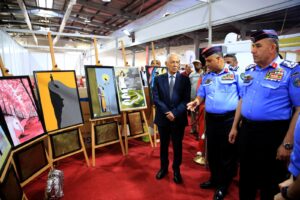 وجال العيسوي، في أركان المعرض، الذي يأتي تزامنا مع احتفالات المملكة بعيد الاستقلال التاسع والسبعين، وتستمر فعالياته لمدة عشرة أيام.