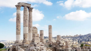 إضاءة خزنة البترا بألوان العلم الأردني احتفاء بعيد الاستقلال الـ 79