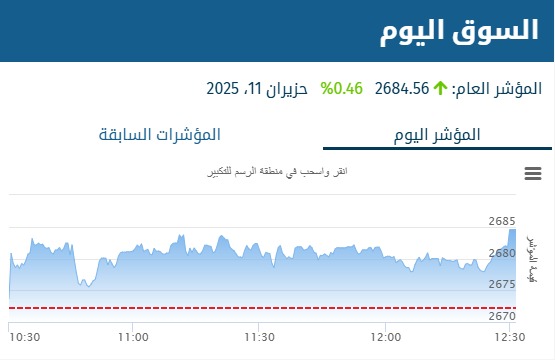 هرمنا – أغلقت بورصة عمان، اليوم الأربعاء، تداولاتها على ارتفاع نسبته 0.46 بالمئة الى مستوى 2684 نقطة، حيث بلغت الأسهم المتداولة 2.9 مليون سهم، بقيمة 7.6 مليون دينار، نتيجة تنفيذ 2865 صفقة.