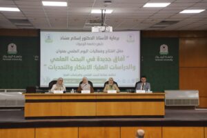 وأضاف خلال افتتاحه فعاليات اليوم العلمي لعمادة البحث العلمي والدراسات العليا بعنوان “آفاق جديدة في البحث العلمي والدراسات العليا: الابتكار والتحديات”، أن البحث العلمي هو السبيل إلى نهضة الأمم وإيجاد الحلول الناجعة لمختلف التحديات التي تواجه المجتمعات.