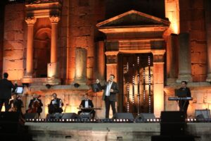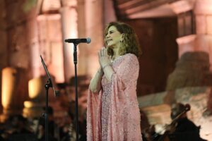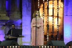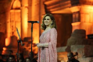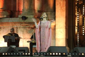 هرمنا- بشوق السنين جاءت مطربة الجيل ميادة الحناوي حاملة سلال الغناء الراقي لتملأ فضاء المسرح الجنوبي شجنا في أولى مشاركاتها بمهرجان جرش بمساعدة الفرقة الموسيقية الأردنية بقيادة المايسترو الدكتور هيثم سكرية.