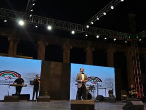 وتزينت الليلة بصوته بأغنية “حنا كبار البلد، حنا كراسيها” و”ع العين موليتين” و تفاعل معه الجمهور وتعالت معه الصوت مرافقه له في الغناء.