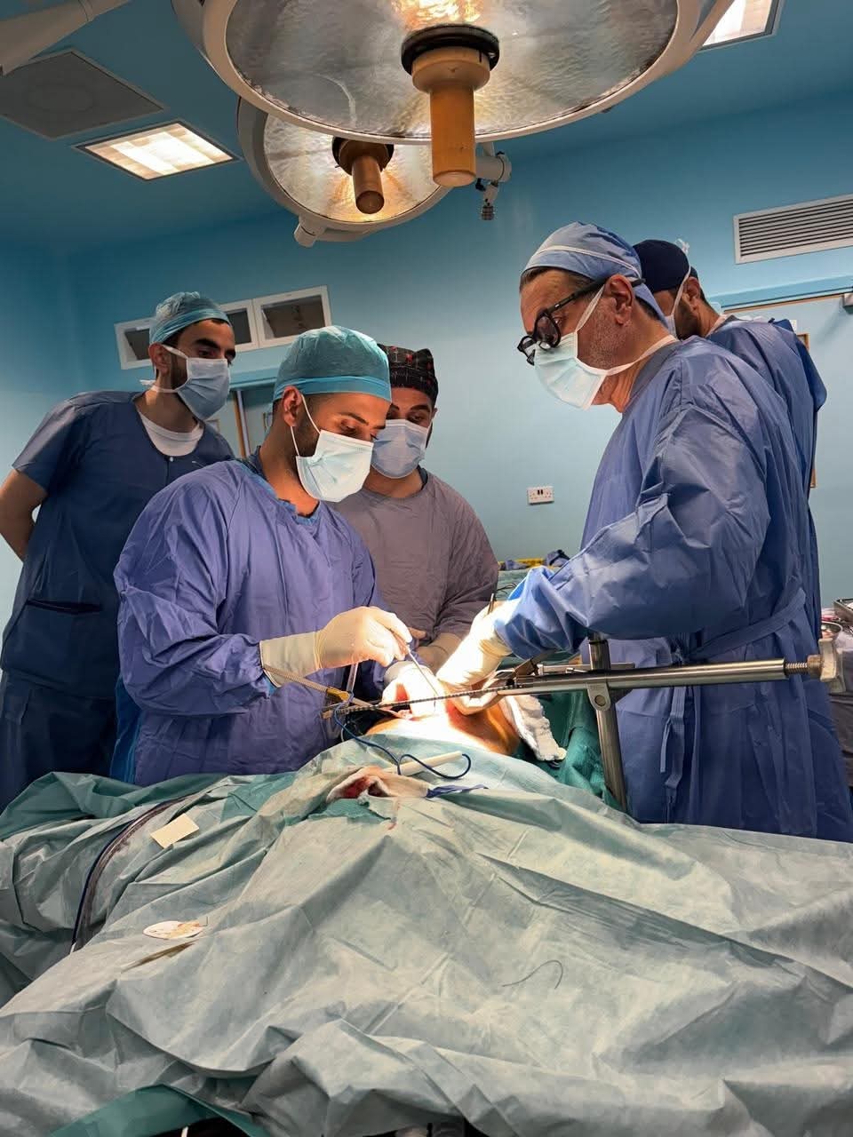 وشارك في إنجاز هذا العمل الطبي فريق متخصص ضمّ: الدكتور محمد الهزايمة أخصائي التخدير وفريقه والأطباء المقيمين الدكتور خليل أيوب والدكتور أحمد عماش وطاقم التمريض رهام بيدس، عطاف بطاينة، أحمد طواها، وريم حداد