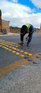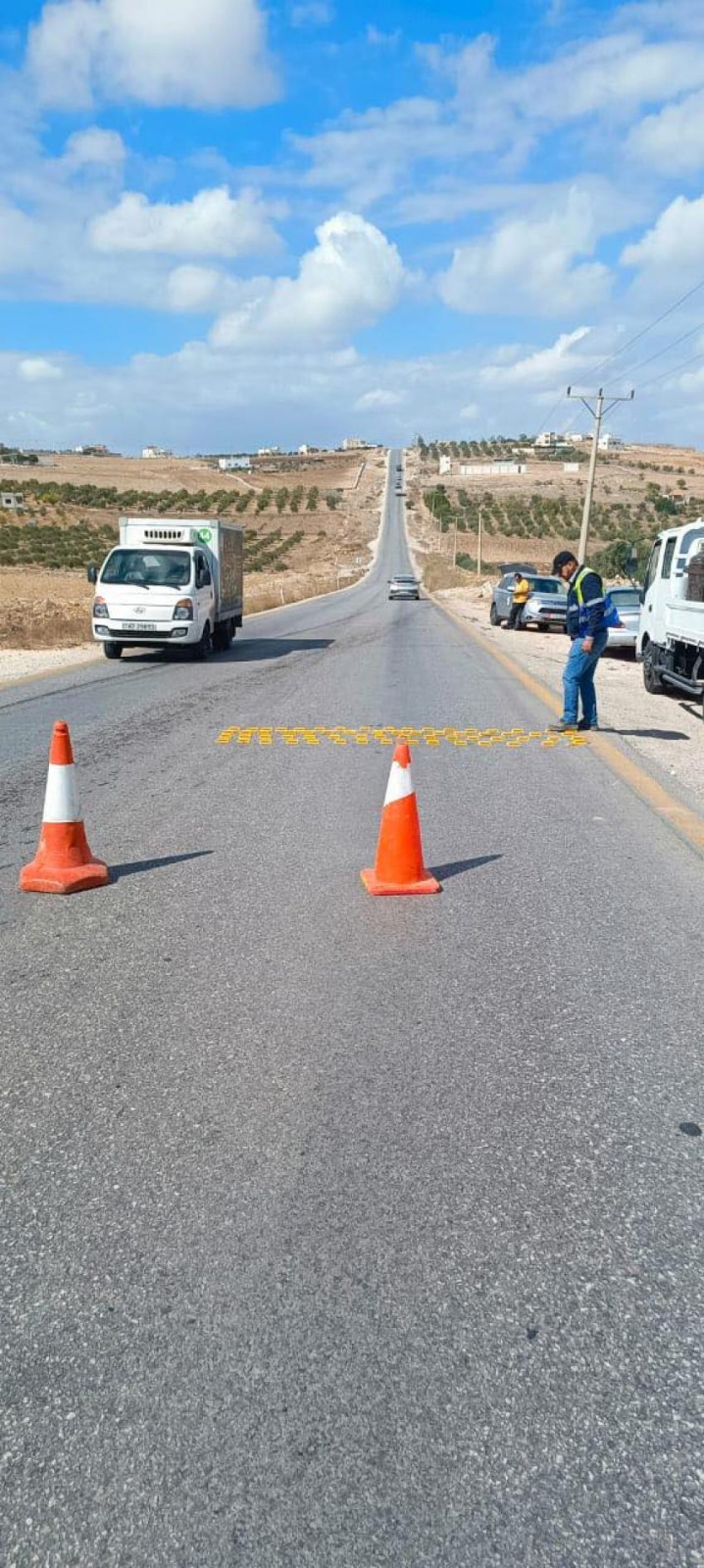 الأشغال تنجز تركيب مخففات سرعة وتخطيط طريق البترول في إربد