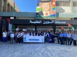 وانطلقت فعاليات اليوم بمسيرةٍ طلابية من أمام مبنى رئاسة الجامعة باتجاه عمادة شؤون الطلبة، بمشاركة عميد شؤون الطلبة الدكتور أحمد الشريفين، والأب سمير إسعيد مؤسس المدرسة الأسقفية، وعدد من أعضاء الهيئتين التدريسية والإدارية، وطلبة الجامعة والمدرسة.