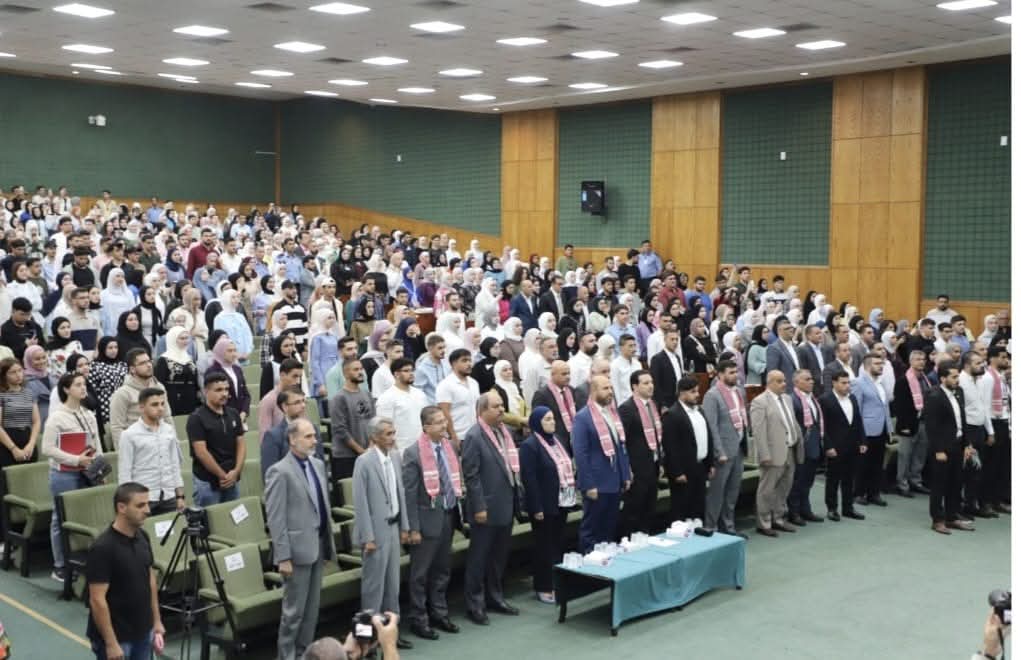 من جهته، ألقى رئيس اتحاد الطلبة الطالب عدي الذيابات، كلمة أكد فيها أن الجامعة لم تكن يومًا مجرد مؤسسة أكاديمية، بل كانت رسالة فكر، وميدان تميز، ومدرسة انتماءٍ وصبرٍ ووعي، حيث أن “اليرموك” احتضنت الأجيال، وشهدت على قصص الطموح التي بدأت من مقاعدها وانطلقت لتصنع الفرق في وطنٍ نعتز به جميعًا.