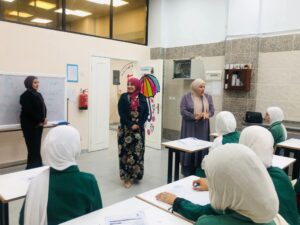 وفي سياق متصل ، تابعت الشطناوي جولتها على مدرسة حاتم الثانوية للبنات حيث تفقدت سير العملية التعليمية في المدرسة واطلعت على أعمال مشاغل BTEC ، حيث التقت بطالبات الفن والتصميم وتابعت سير تنفيذ الواجبات والمهام المطلوبة من الطالبات