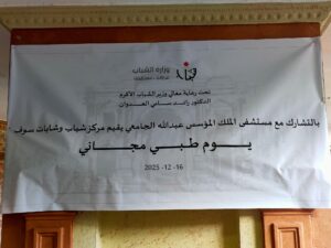 هرمنا- تحت رعاية معالي وزير الشباب الدكتور رائد العدوان نظم مستشفى الملك المؤسس عبدالله الجامعي بالتعاون مع مركز شباب وشابات سوف يوم طبي مجاني في بلدة سوف بمحافظة جرش استفاد منه ما يقارب (300 ) مواطن ,حيث أشار نائب مدير عام المستشفى الدكتور سليمان المومني إلى أهمية إقامة هذا اليوم الطبي المجاني والذي ينطلق من رؤية ورسالة المستشفى ويأتي حرصاً على الوصول إلى كافة فئات وشرائح المجتمع المدني والعمل على خدمتهم بإقامة الأيام الطبية المجانية التي تعكس الدور الحقيقي لهذه المؤسسة الرائدة في خدمة المجتمع وتقديم الرعاية الصحية والبرامج التثقيفية المتنوعة، وتوفير الخدمات الصحية المتعددة وتعزيز مفهوم المسؤولية المجتمعية ونشر الوعي الصحي .