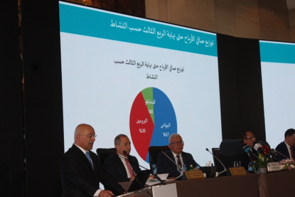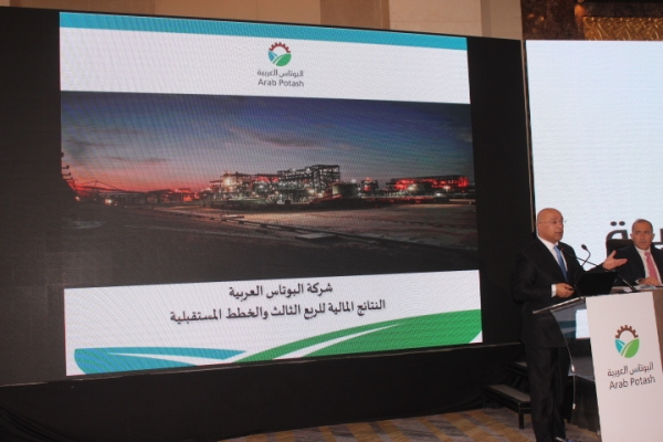 وترأس المؤتمر رئيس مجلس الإدارة جمال الصرايرة وبحضور الرئيس التنفيذي للشركة الدكتور معن النسور ونواب الرئيس التنفيذي في الشركة. وإستعرض الصرايرة أهم إنجازات الشركة حتى نهاية الربع الثالث من العام الحالي، حيث حققت شركة البوتاس العربية أرباحاً صافية حتى نهاية الربع الثالث من العام الحالي بلغت (121) مليون دينار مقارنة مع (89) مليون دينار خلال نفس الفترة من العام الماضي وبنسبة نمو بلغت (36%) . وتجدر الإشارة إلى أن هذه الأرباح تحققت نتيجة لتطبيق خطة متكاملة ومستدامة تهدف إلى تعظيم العائد من منشآت الشركة، وهذا تمخض عن تحقيق أرقام قياسية جديدة على مستوى كميات مبيعات وإنتاج مادة البوتاس حتى نهاية الربع الثالث من العام 2019، إذ بلغت كميات إنتاج مادة البوتاس (1.88) مليون طن في حين بلغت كميات مبيعات مادة البوتاس (1.83) مليون طن، وهذه الكميات هي الأعلى تاريخياً منذ بدء الإنتاج في الشركة ومن المتوقع أن تنعكس هذه الإنجازات إيجابياً على ربحية الشركة حتى نهاية العام الحالي.