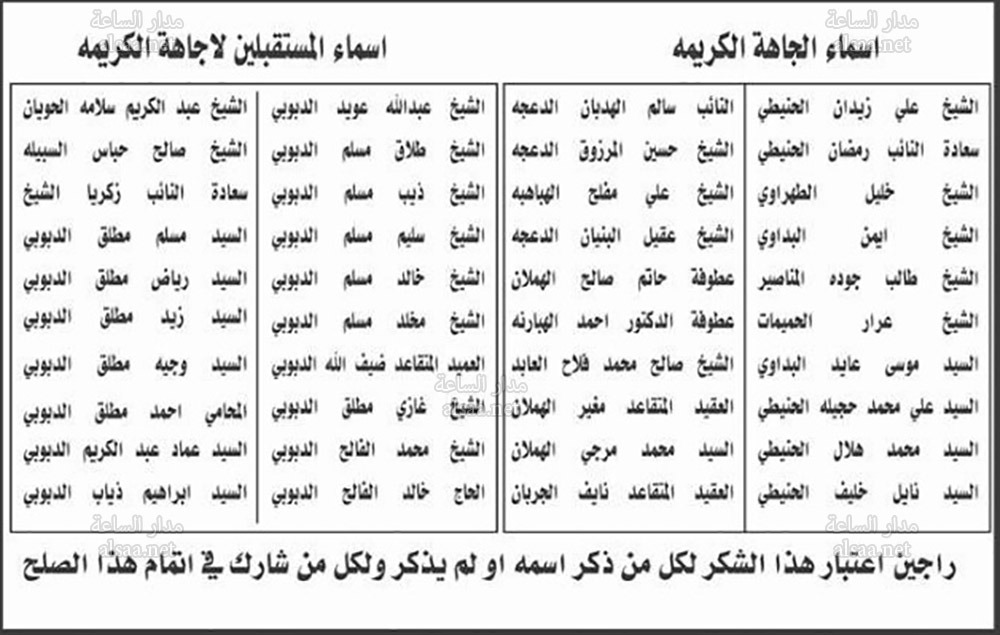 عشائر الدعجة تشكر عشائر الدبايبة