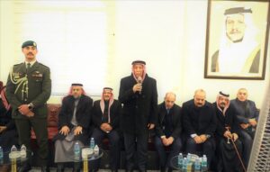 ونقل العيسوي، خلال زيارته بيت عزاء الفقيد في منطقة النعيمة بمحافظة إربد، تعازي ومواساة جلالة الملك وسمو ولي العهد إلى ذويه وعموم عشيرة المصري سائلا المولي عز وجل أن يتغمدهما بواسع رحمته.