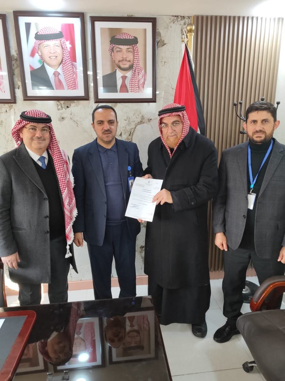 حيث قام الدكتور رائد حسين جروان مدير أوقاف إربد الأولى مندوبا عن وزير الأوقاف والشؤون والمقدسات الإسلامية بتسليمه كتاب الشكر متمنياً له دوام الصحة والعافية.
